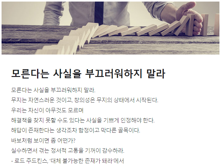 무지는 자연스러운 것이고, 창의성은 무지의 상태에서 시작된다.