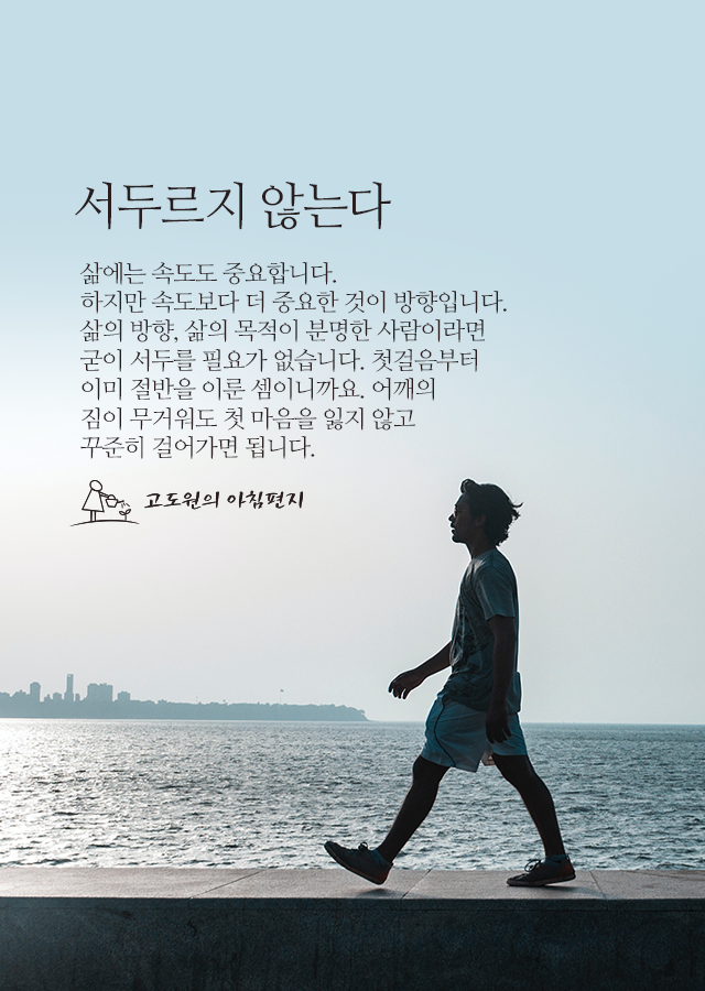 굳이 서두를 필요가 없습니다. 첫걸음부터
