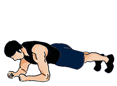 - ② 주먹을 쥐고 전완을 삼각형에 가깝게 만들거나 혹은 평행을 유지하면서 전완을 바닥에 댄다.