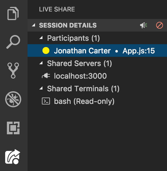 - Once complete, you’ll see Live Share appear in your status bar. You can now begin collaborating with others immediately!