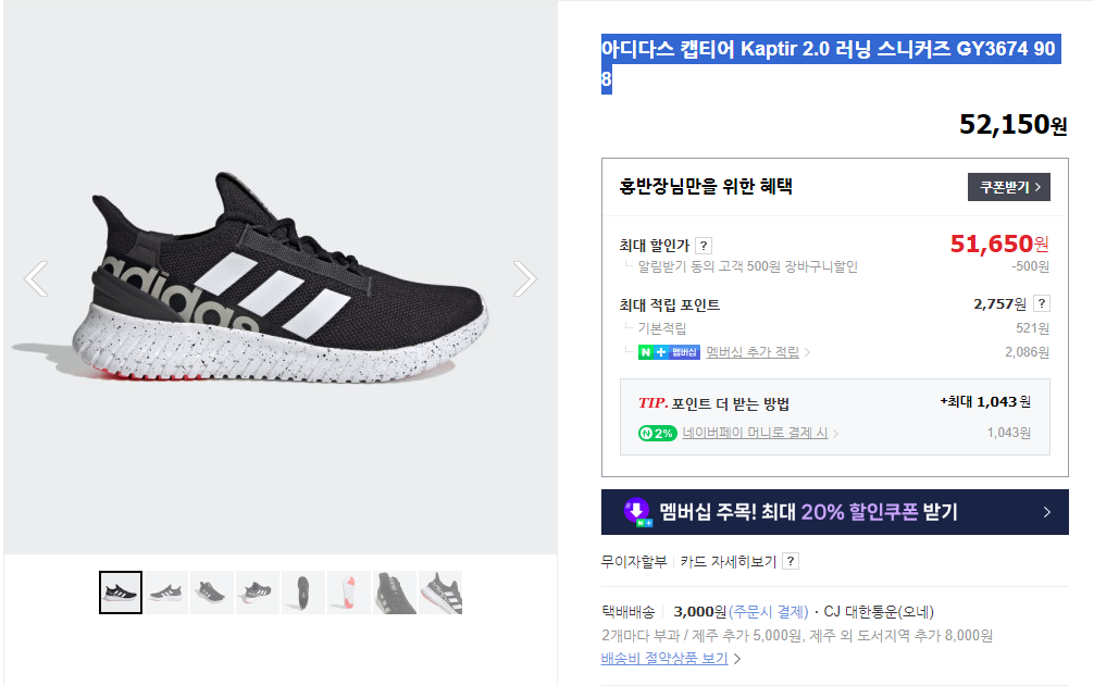 아디다스 캡티어 Kaptir 2.0 러닝 스니커즈 GY3674 908