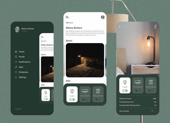 But did they know back in the 1960s that the entire house would be controlled by a single app on the phone? Moreover, the term “smart home” appeared already in 1984. They couldn’t have imagined it. However, I would like to show you a smart home control app template. Its pleasant design in itself sets you up for chilling.