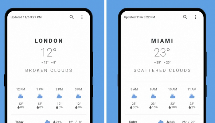 This is another handy and easy-to-use app template. You can add it to your app so your users can watch the weather. It’s suitable for apps with city events or as a standalone app.