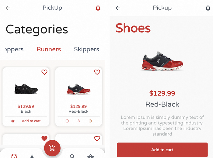 Another awesome, free and very beautiful template for an ecommerce app. Bright colors are perfectly complemented by a white background, on which any thing will look even more attractive.
