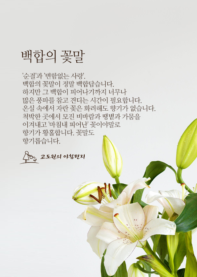 백합의 꽃말이 정말 백합답습니다.