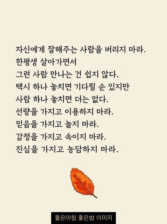 자신에게 잘해주는 사람을 버리지 마라.