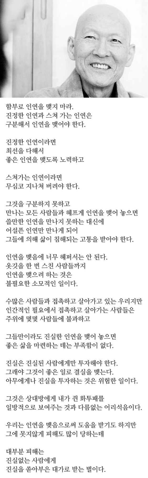 함부로 인연을 맺지 말라는 법정스님