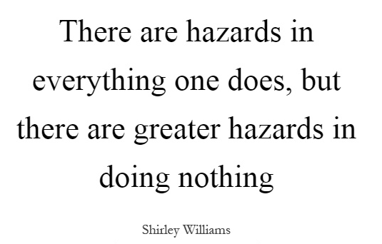 "There are hazards in everything one does, but there are greater hazards in doing nothing."