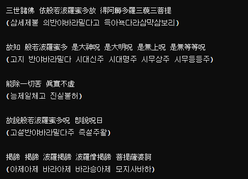 - 그러므로 알아야 할 것은 반야바라밀다는 크나큰 신비의 주문이며, 크나큰 밝은 주문이며, 최고의 주문이며, 더할 나위 없는 주문이다.