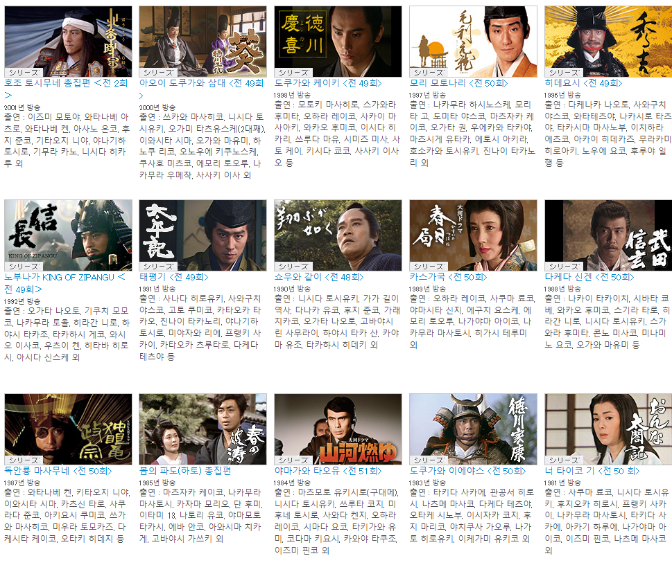 공식 홈 : https://www.nhk.or.jp/archives/bangumi/special/taiga/