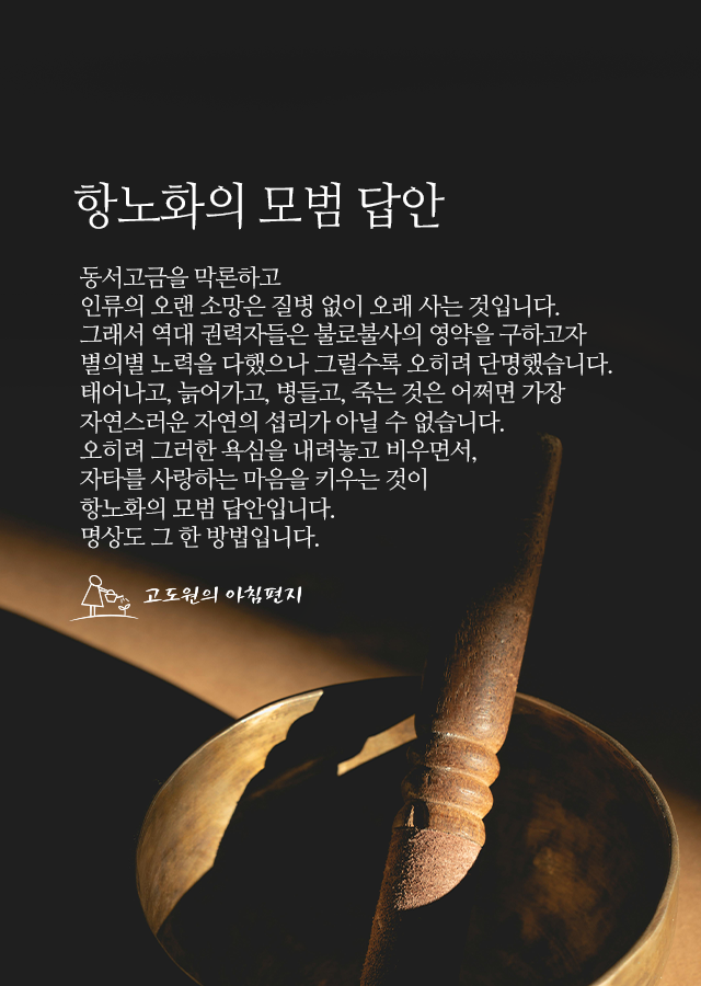 인류의 오랜 소망은 질병 없이 오래 사는 것입니다.