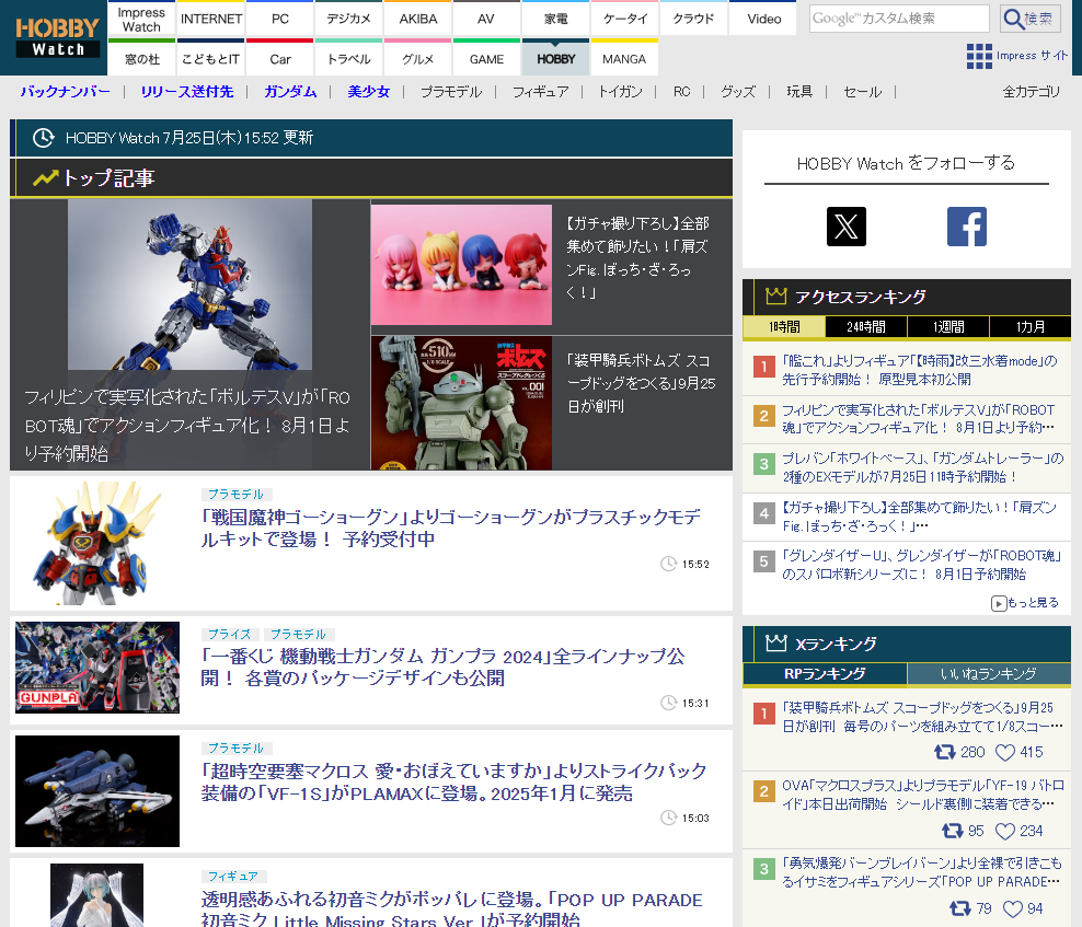 プラモデル、フィギュア、ゲームグッズ、TCG、ボードゲーム、トイガン、RC、プライズ、食玩、知育など、あらゆるホビー情報を扱うホビーの総合情報サイト