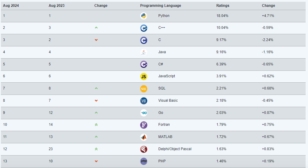 TIOBE Index for August 2024