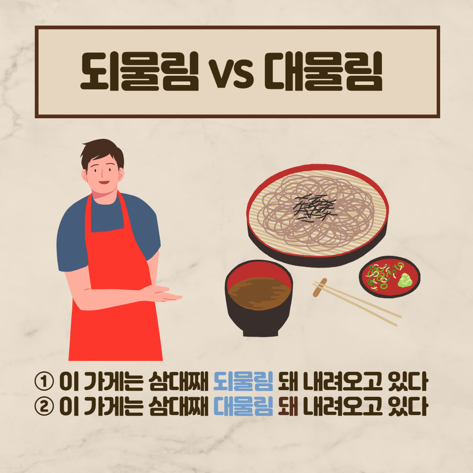 잘못된 표기 ‘되물림(X)’을 ‘대물림’하지 말고 바르게 써 주세요.