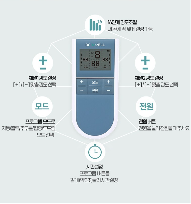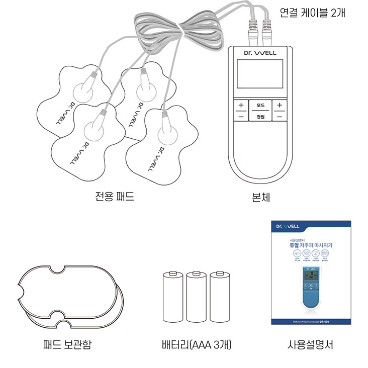 닥터웰 듀얼 저주파 마사지기 본체 전용패드4P 전용패드홀더1P AAA건전지 3개 1세트 - 안마기 | 쿠
