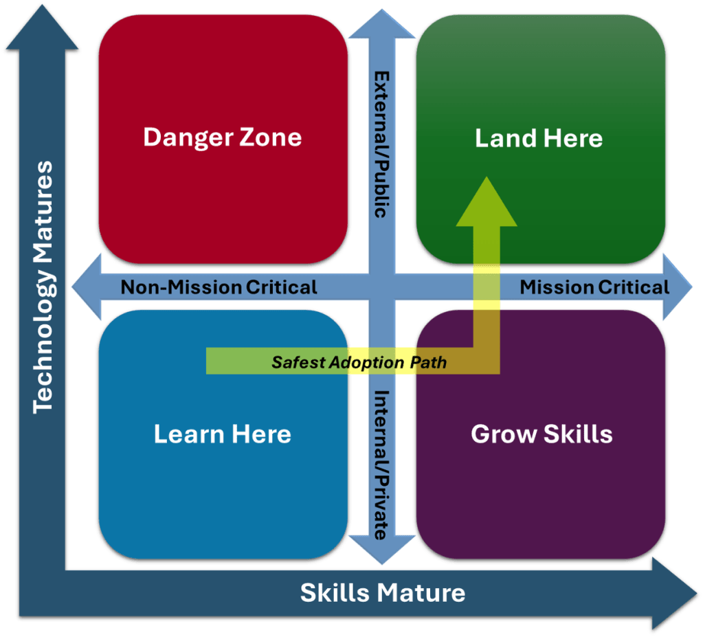 • 기술의 특성이 기존 경험과 정반대일 수 있다(많은 조직이 IaaS에 초점을 맞추느라 클라우드 네이티브의 가치를 놓쳤다. 생성형 AI는 기본적으로 기존 예측 AI와 크게 다르다).