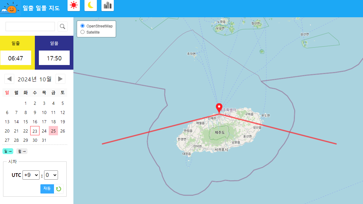 일출 일몰 시간 방향 지도