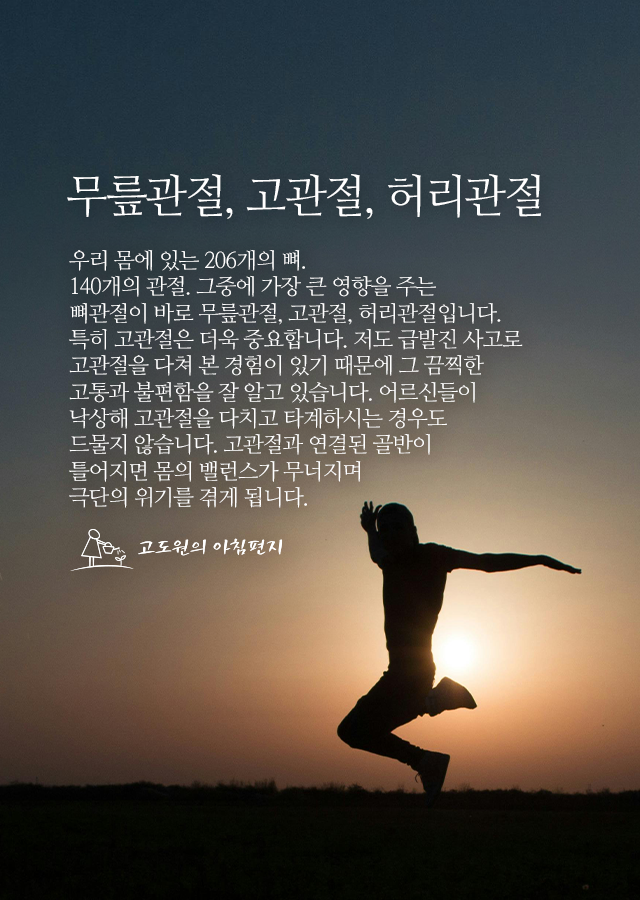 뼈관절이 바로 무릎관절, 고관절, 허리관절입니다.