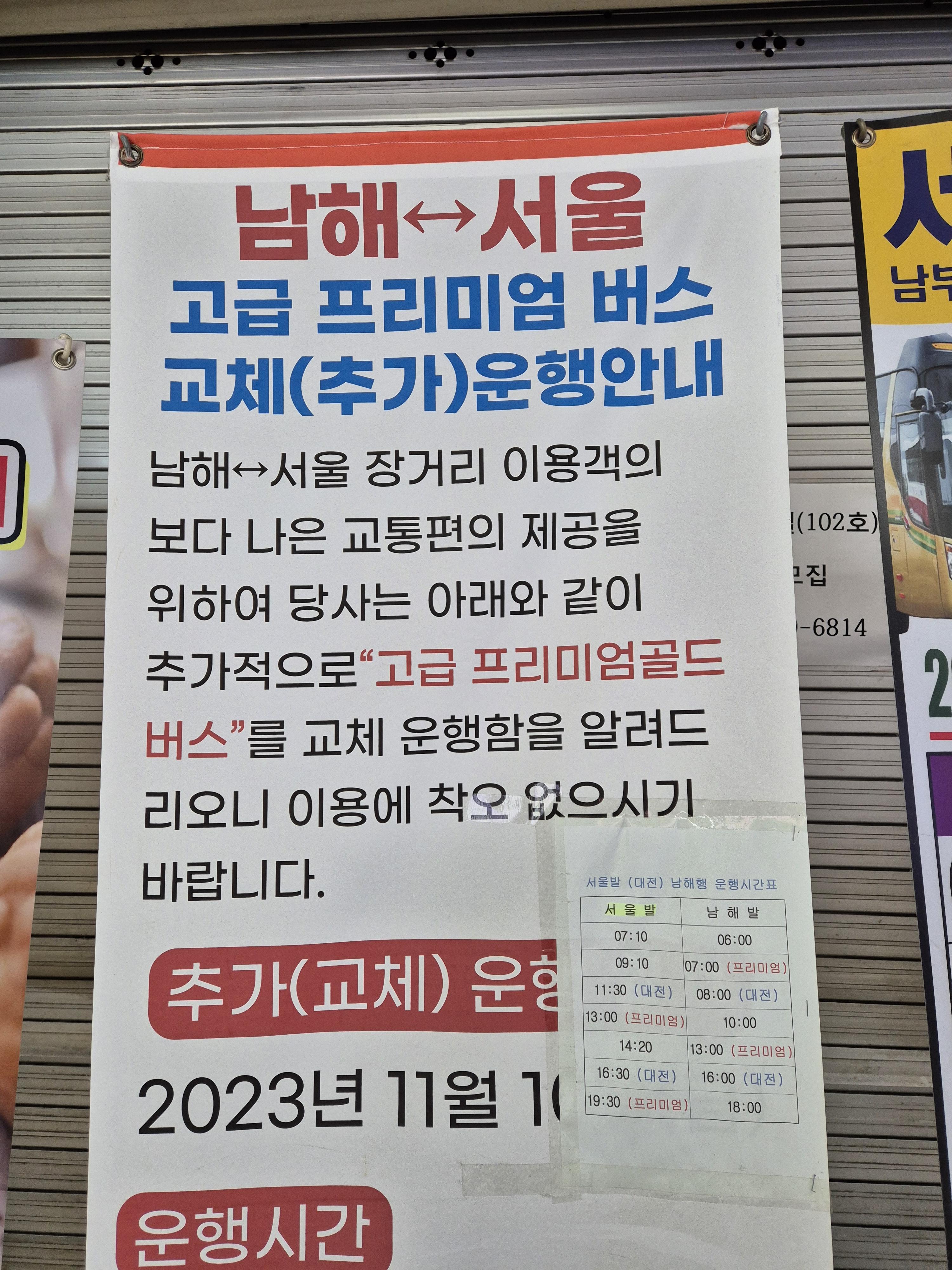 서울 남부터미널~남해 프리미엄버스