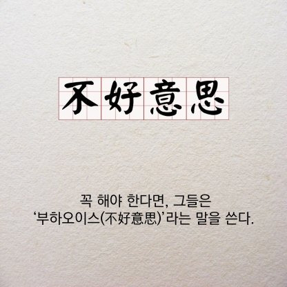 不好意思:bù hǎo yì sī 부하오이스 --- 실례합니다. 죄송합니다.(가벼운 마음으로)