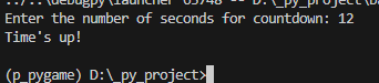 사용자가 초 단위로 시간을 입력하면 카운트다운을 실행하는 간단한 Python 프로그램입니다.
