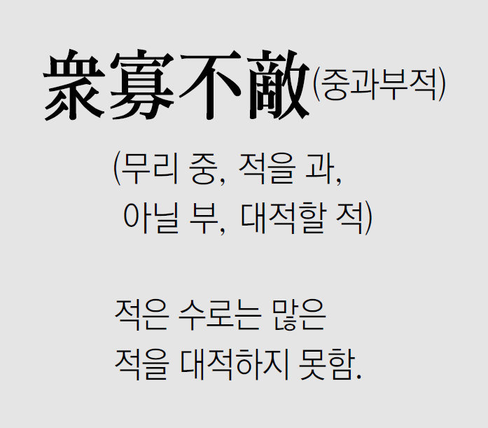 [한자성어]衆寡不敵(중과부적)(무리 중, 적을 과, 아닐 부, 대적할 적)