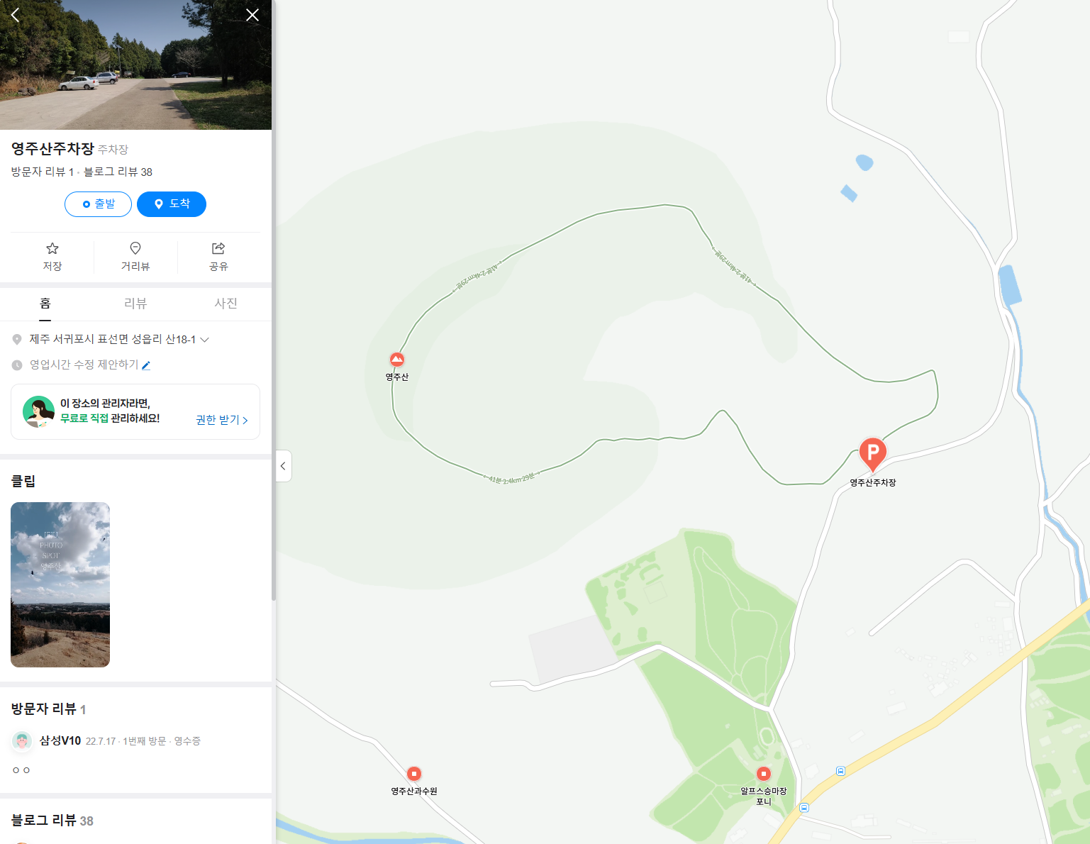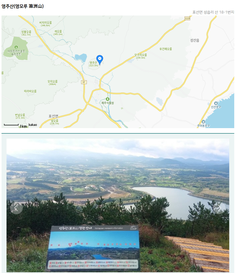 영주산(영모루 瀛洲山) 표선면 성읍리 산 18-1번지 주차장 위치