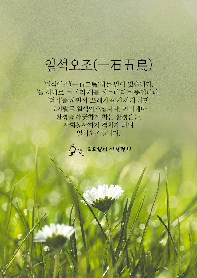 * '일석이조'(一石二鳥)라는 말이 있습니다.