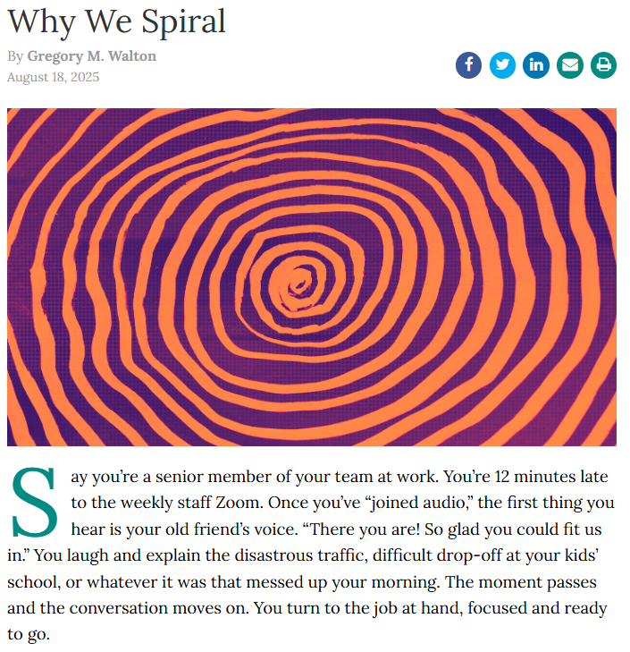 - 직장에서 작은 상황이 소속감이나 능력에 대한 의문을 불러일으키면, 생각이 꼬리를 물며 부정적 나선형으로 이어질 수 있음