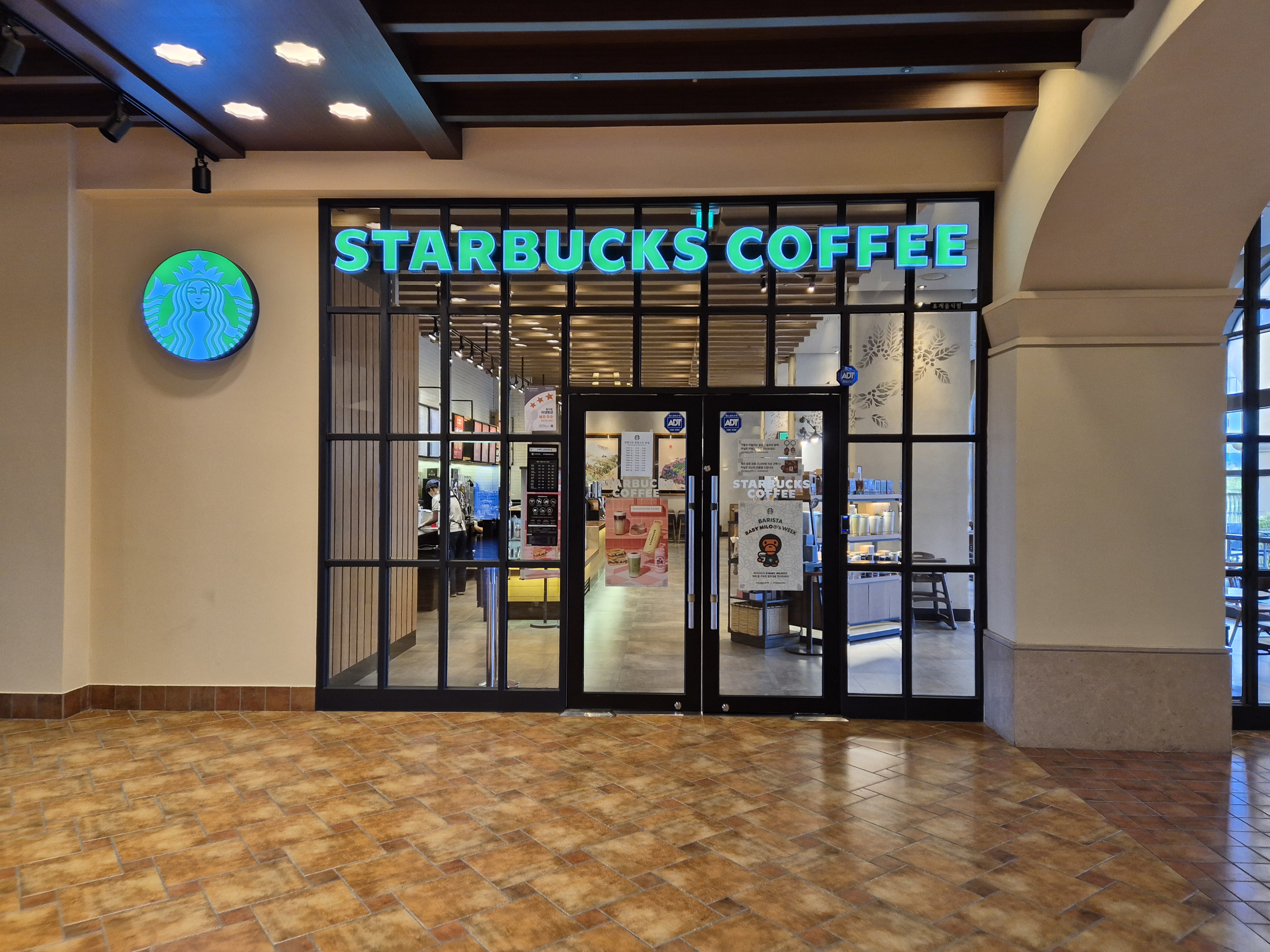 로비에 있는 스타벅스에서 커피 한잔 테이크 아웃.