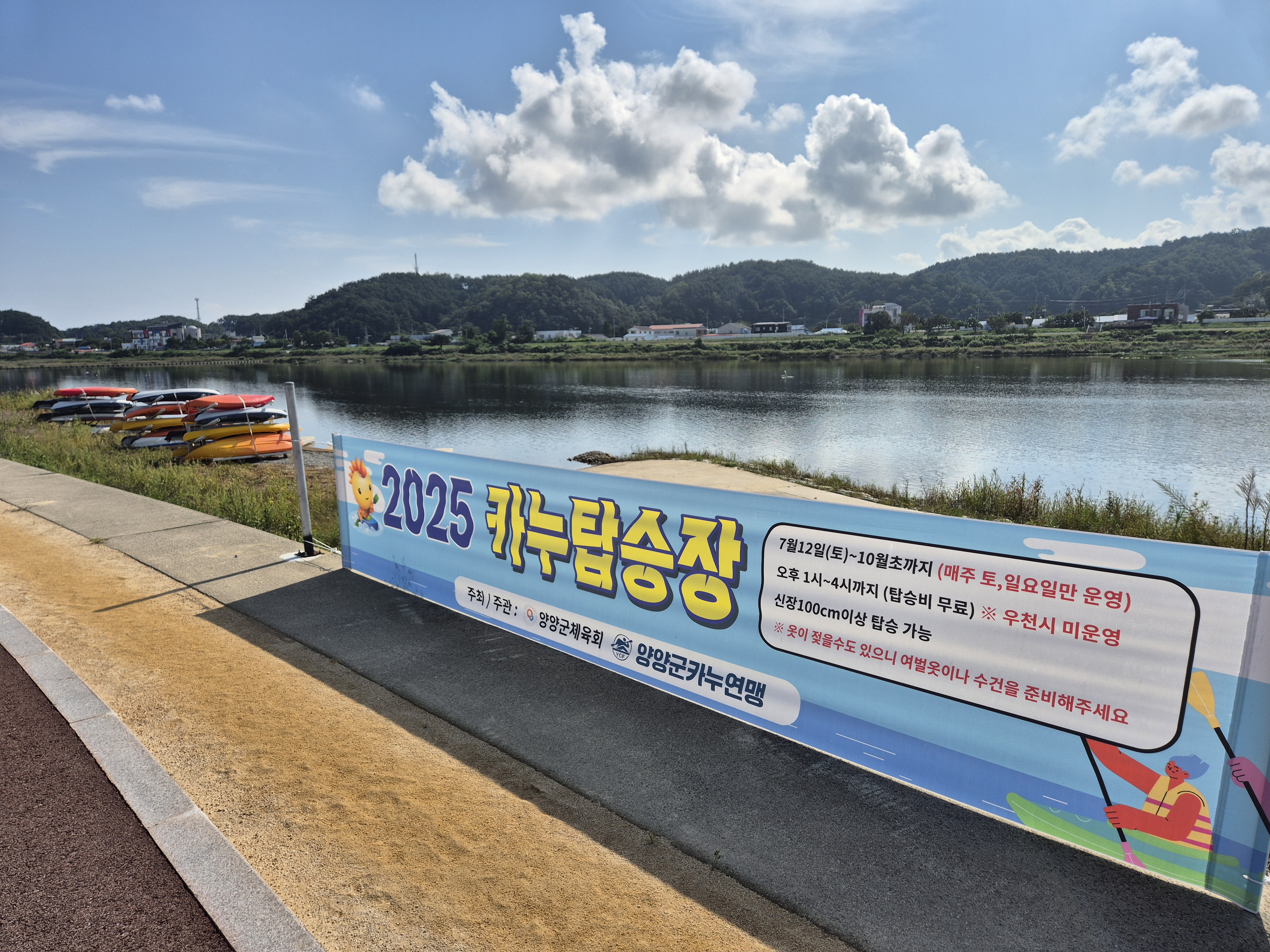 시장에서 꽈배기 사고, 남대천 강가 산책.