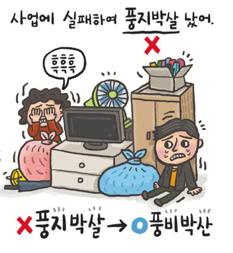 "사업 실패로 인해 온 가족의 재산이 풍비박산되었다."
