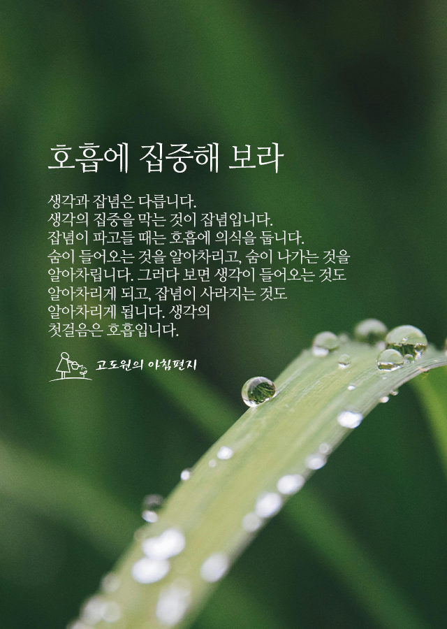 잡념이 파고들 때는 호흡에 의식을 둡니다.