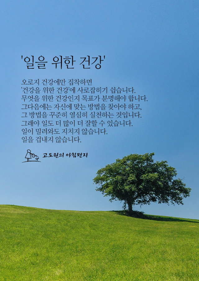 부터는 일이 첫째고, 일을 위해서는 건강해야 한다.