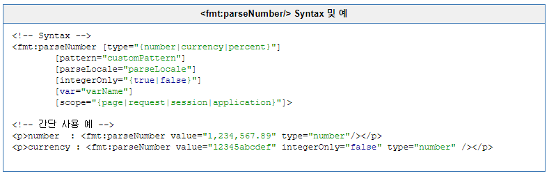 - <%@ taglib prefix="fmt" uri="http://java.sun.com/jsp/jstl/fmt" %> 선언을 해줘야 사용할 수 있다.