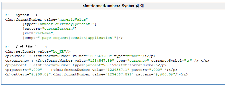 - Format 관련 태그는 국제화와 포맷팅을 지원하는 라이브러리로 구성되어 있다.