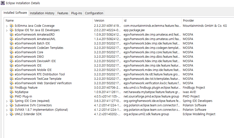 eGov Framework - Eclipse install list