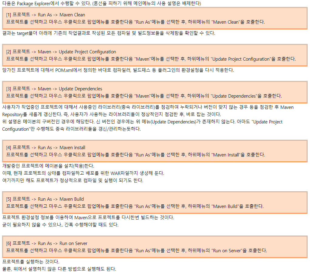 [1] 프로젝트 -> Run As -> Maven Clean