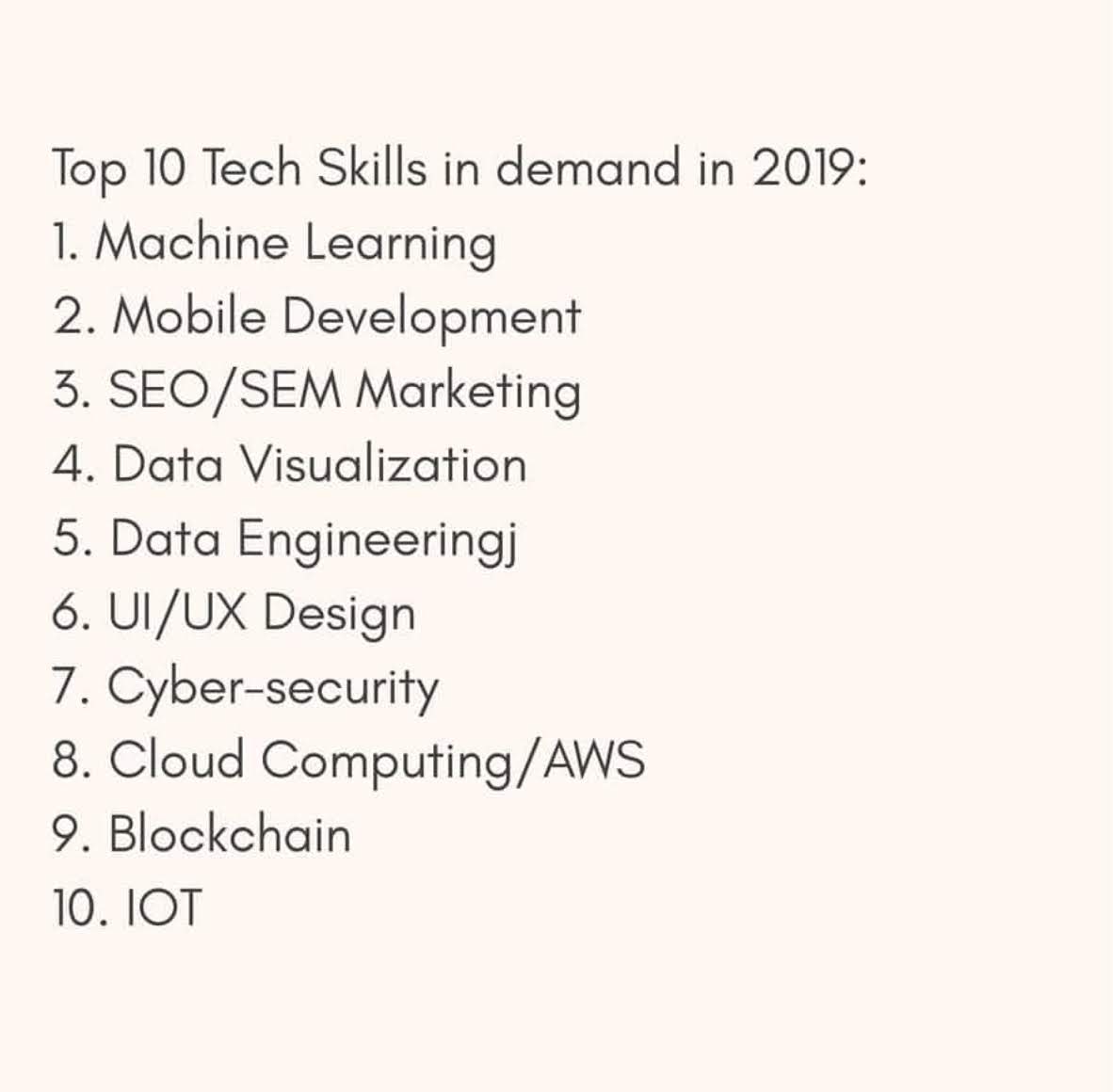 tech Top 10 Tech Skills in demand in 2019