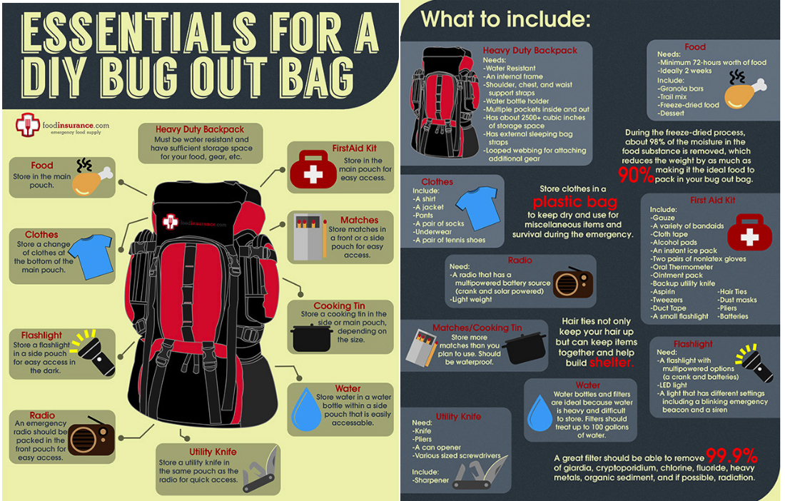 생존배낭 그래픽에 들어가는 물품들의 정보