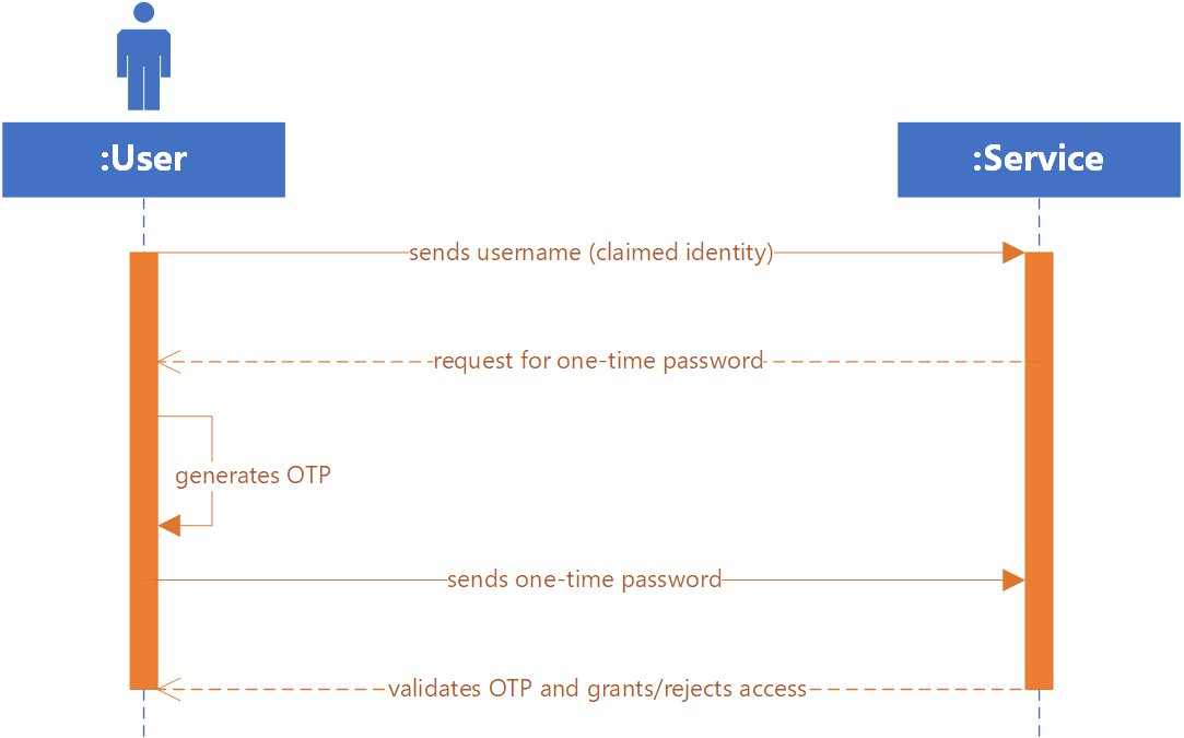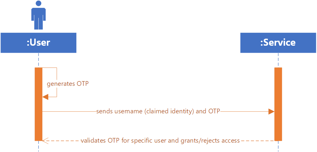 모든 OTP 기반 인증 체계에서 사용자는 먼저 청구 된 신원 을 제공해야 합니다. 일반적으로 이것은 username 을 제공하여 수행됩니다 . 포털 (또는 웹 앱 또는 모바일 앱)이 사용자가 누구인지 주장한 후에 만 해당 사용자를 OTP로 인증하려고 시도합니다. 그 배후의 아이디어는 원격 서비스가 사용자에게 “당신이 정말로 당신이 누구라고 주장하는지 확인하도록하겠습니다”라고 말하는 것 입니다.