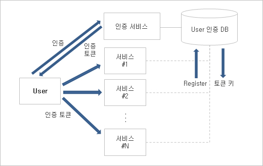 - 미리 인증된 토큰(Cookie 기능 이용)을 받아서 각 시스템 접근 시, 자동으로 전달