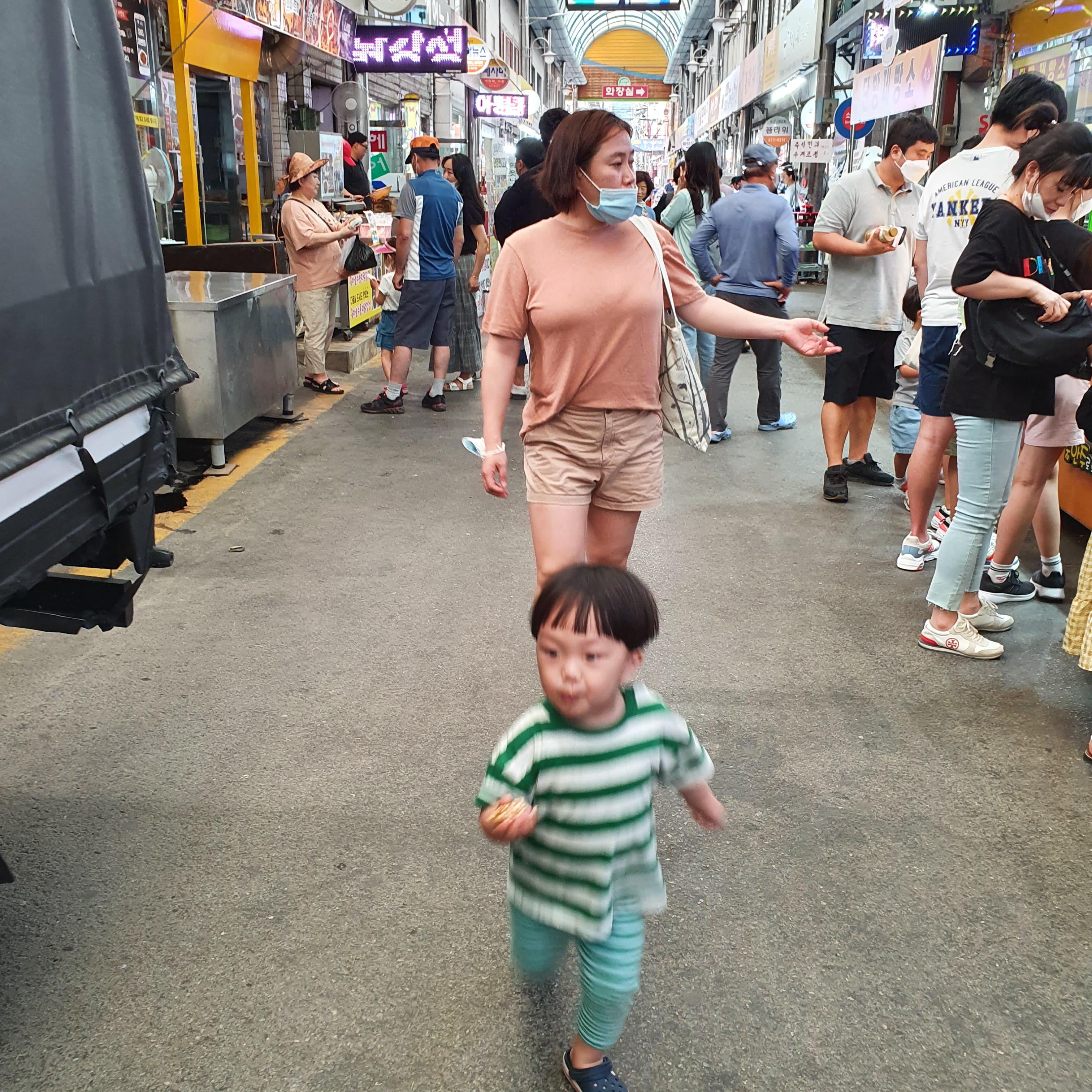 돼지국밥에 밥 말아서 한그릇 먹이고. 궁채장아찌 사고, 강정도 사고. 닭강정 말고.