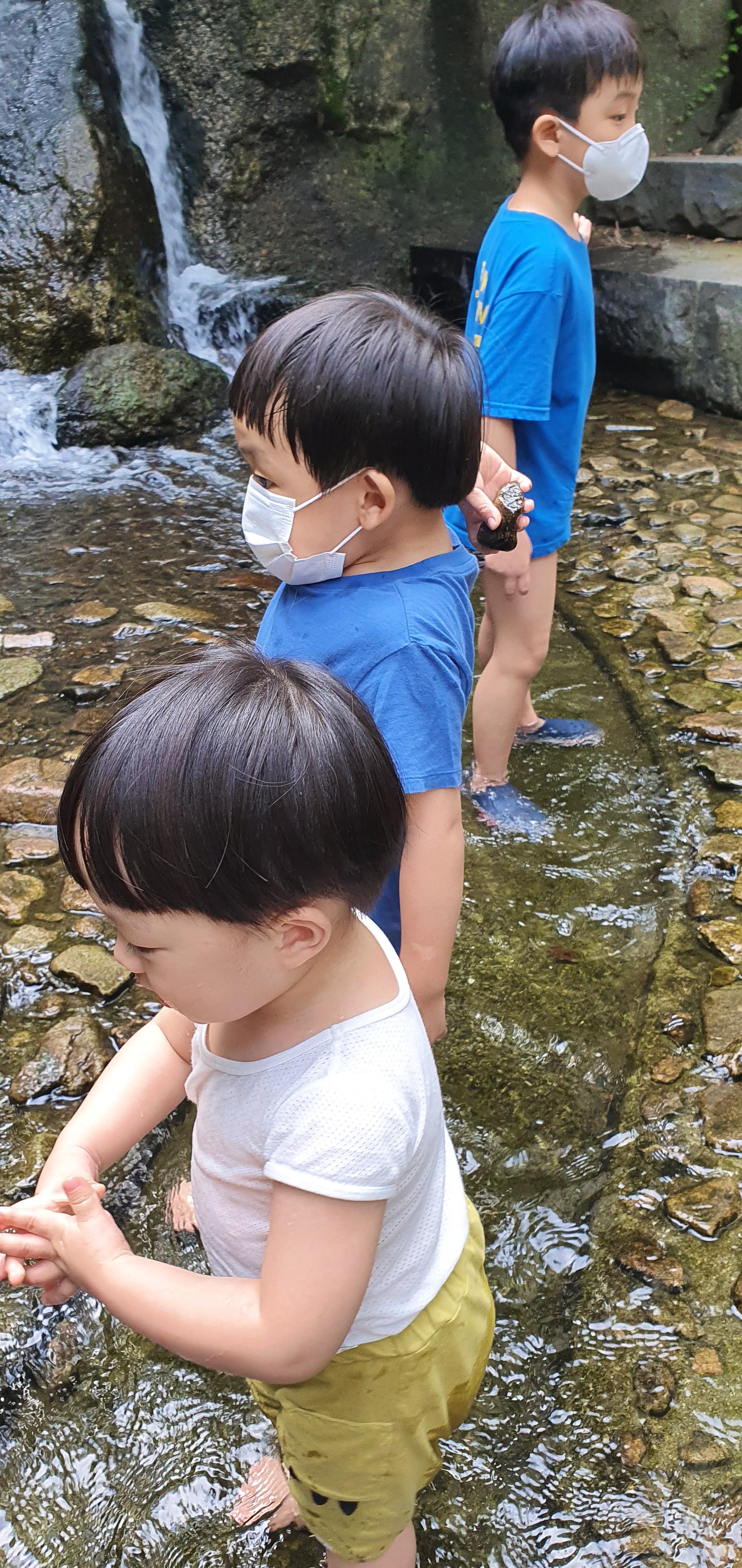 곤지암리조트 가서 체크인하고, 생태하천에서 애들 물놀이 시키고, 목욕 후 바베큐장으로.