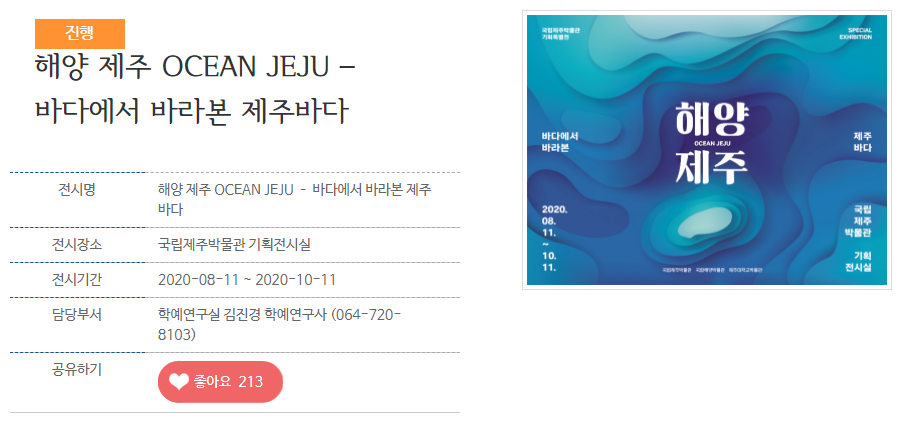 국립제주박물관은 국립해양박물관‧제주대학교박물관과 공동으로 특별전 <해양 제주 OCEAN JEJU – 바다에서 바라본 제주바다>를 개최합니다.