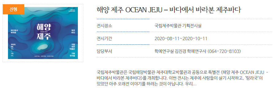 상세 > 특별전시 > 전시 >국립제주박물관