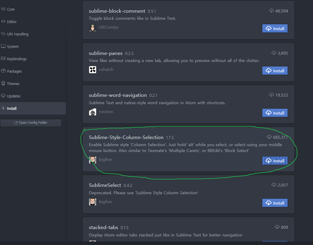 ATOM에서의 세로 선택하기