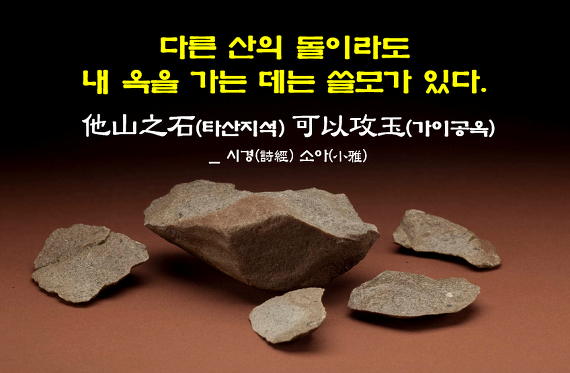 '다른 산의 거친돌이라도 숫돌로 쓰면 자기의 옥을 갈수 있다는 뜻'
