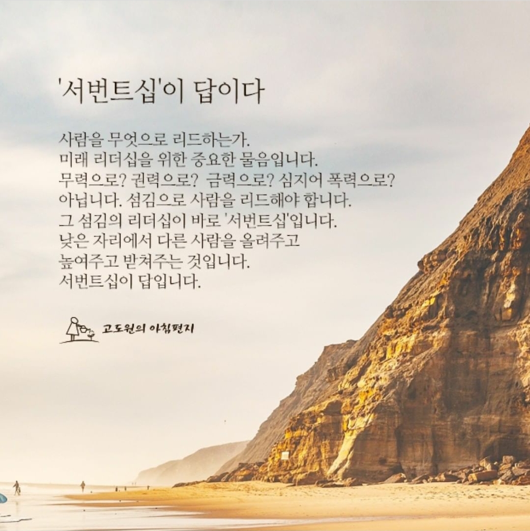 그 섬김의 리더십이 바로 '서번트십'입니다.