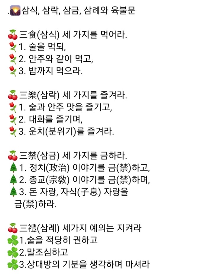 술에 관한 삼락, 삼식, 삼금, 삼례, 육불문.